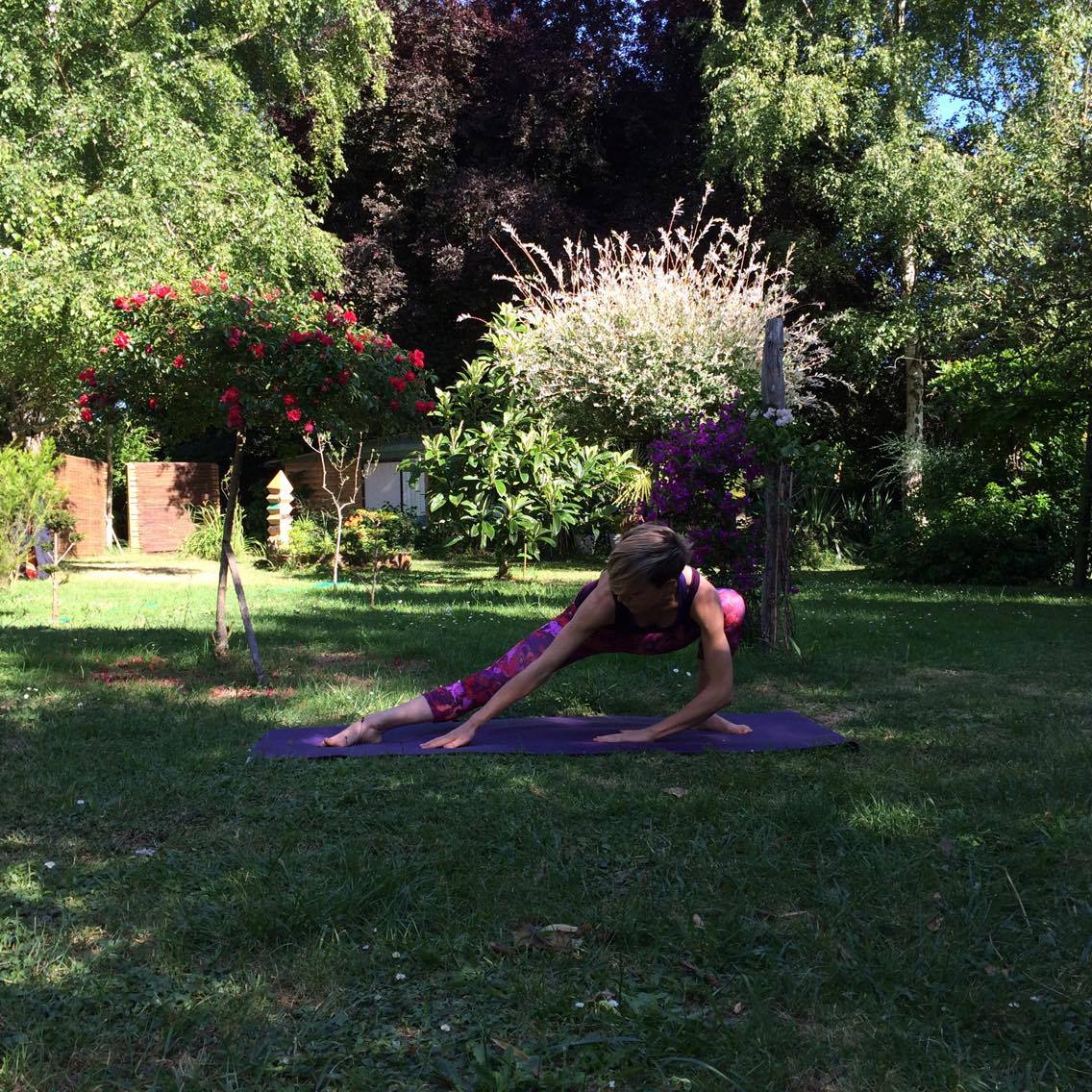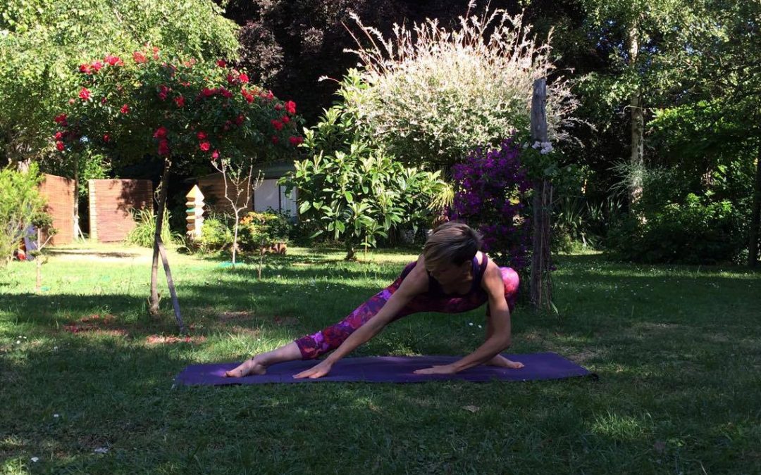 …and then, as you exhale, sink down on the opposite side, bending your right knee and straightening your left leg this time. Inhale and lift… And repeat 3 or 4 more times on each side.