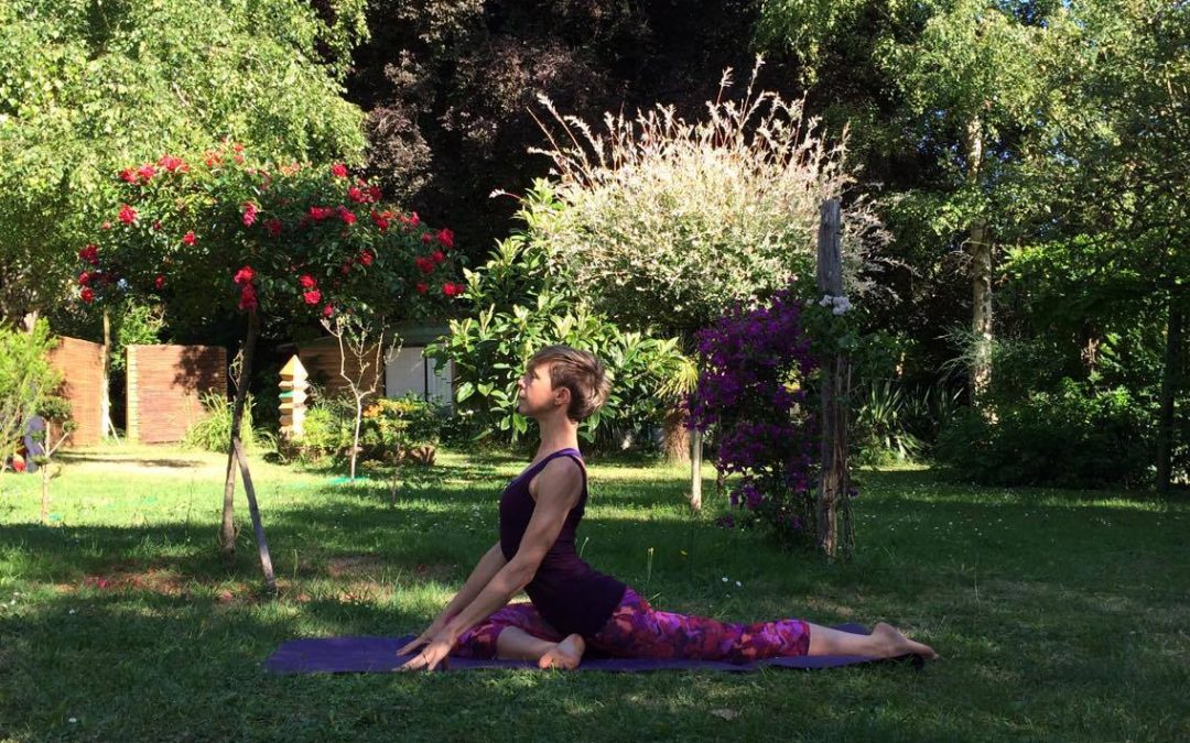 Keep your hips even and your pelvis neutral as you settle into pigeon pose. Place a block under the hip on your bent leg if you feel you’re falling to one side. Repeat on the opposite side.