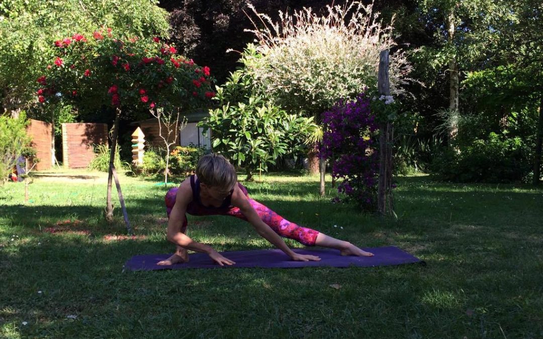 Starting with your toes pointing outward, sink down to the ground as you bend your right knee and straighten your left leg. Inhale and lift…